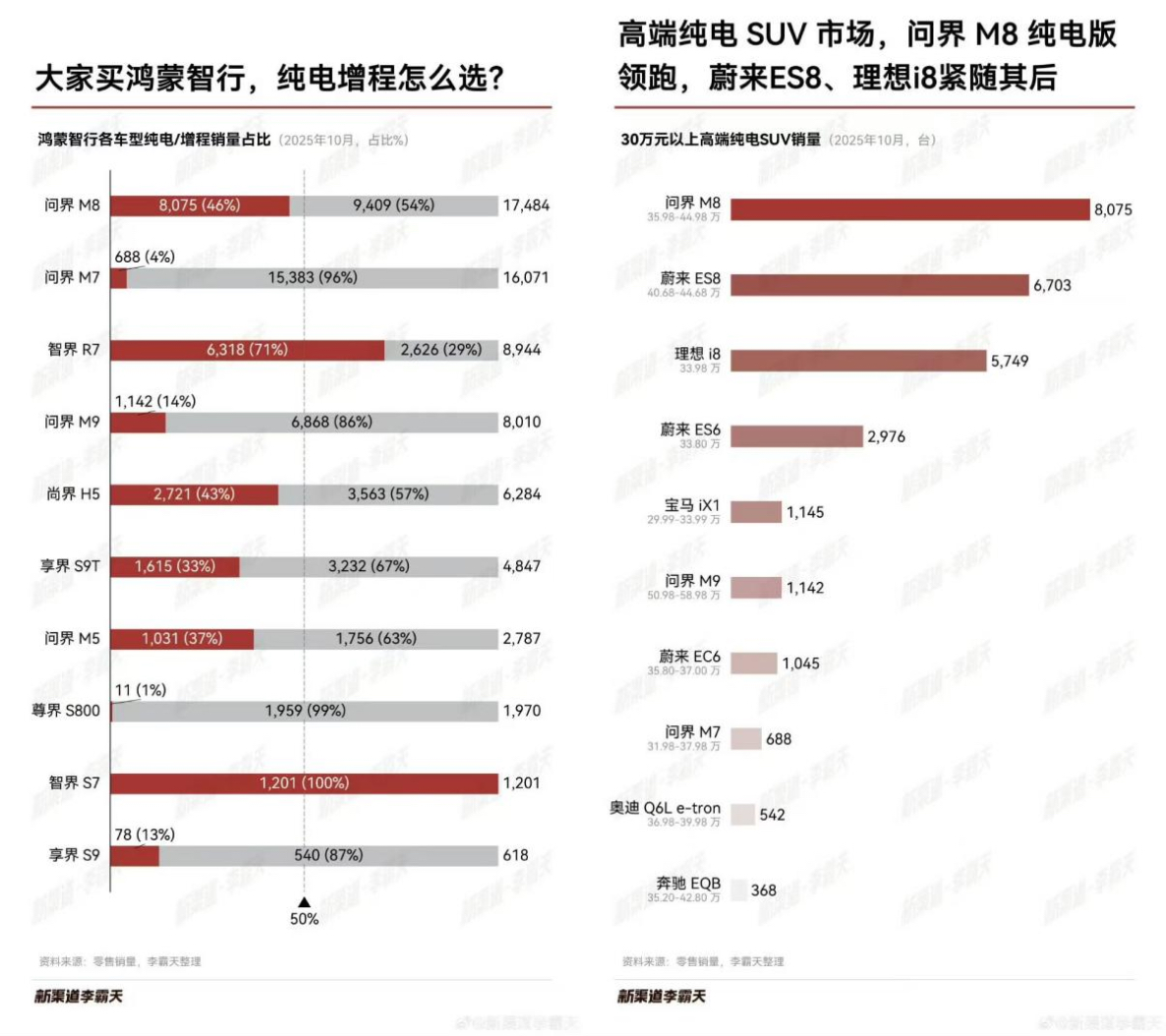 冬季的路面,是潜藏的试炼场。暗冰、侧滑、低能见度,无一不在挑战着驾驶者的神经。面对凛冬的严苛考卷,问界M8以硬核科技为笔,书写下关于“全场景从容驾驭”的答案。问界M8,上市至今累计交付超13万台,以“纯电+增程”双动布局,将冬季行车的种种“惊险”转化为全程的“从容”。2025年10月,问界M8纯电版销售8,075台,占比46%;问界M8增程版销售9,409台,占比54%,两版车型,精准匹配不同家庭用户的出行场景,陪伴用户从容穿越每一个寒冬。
